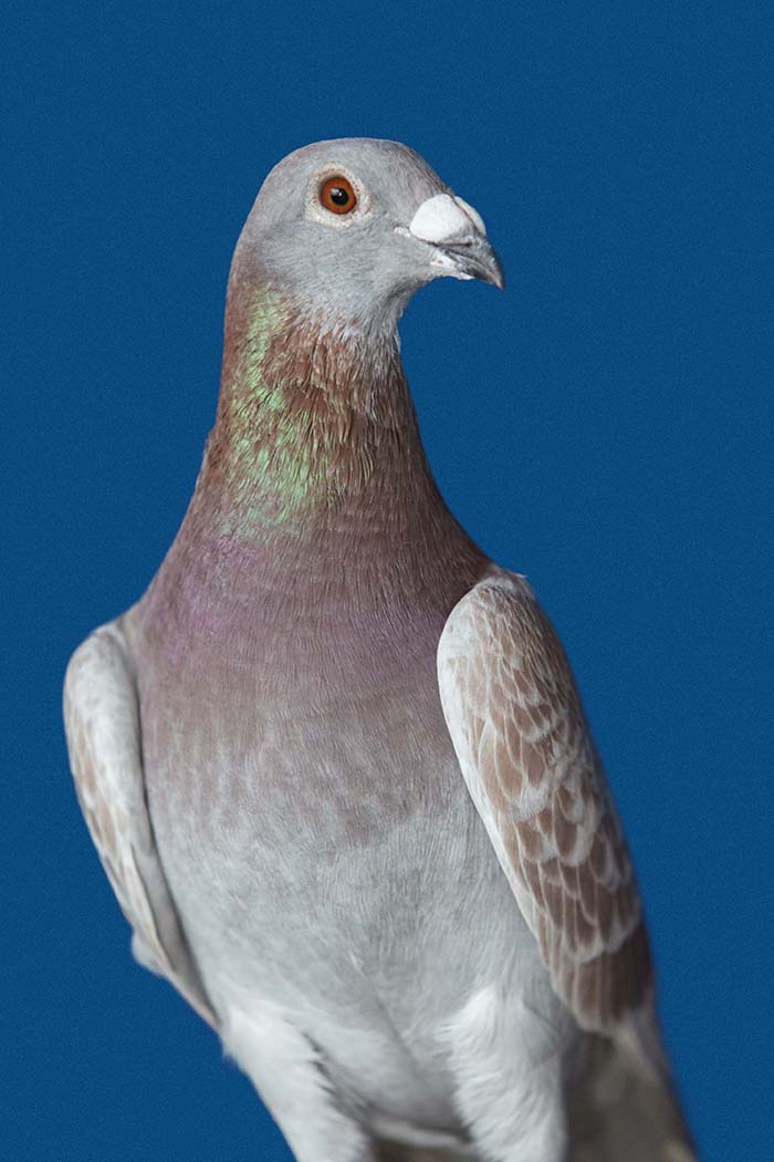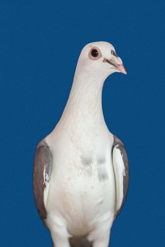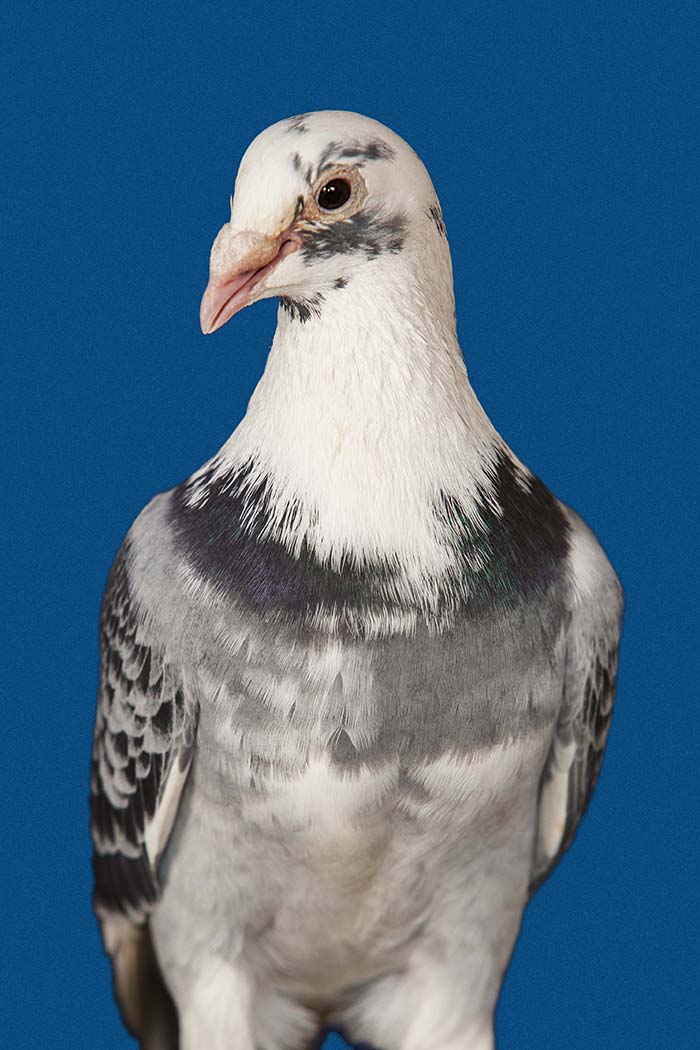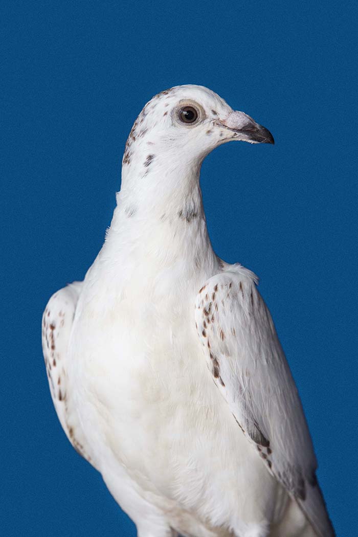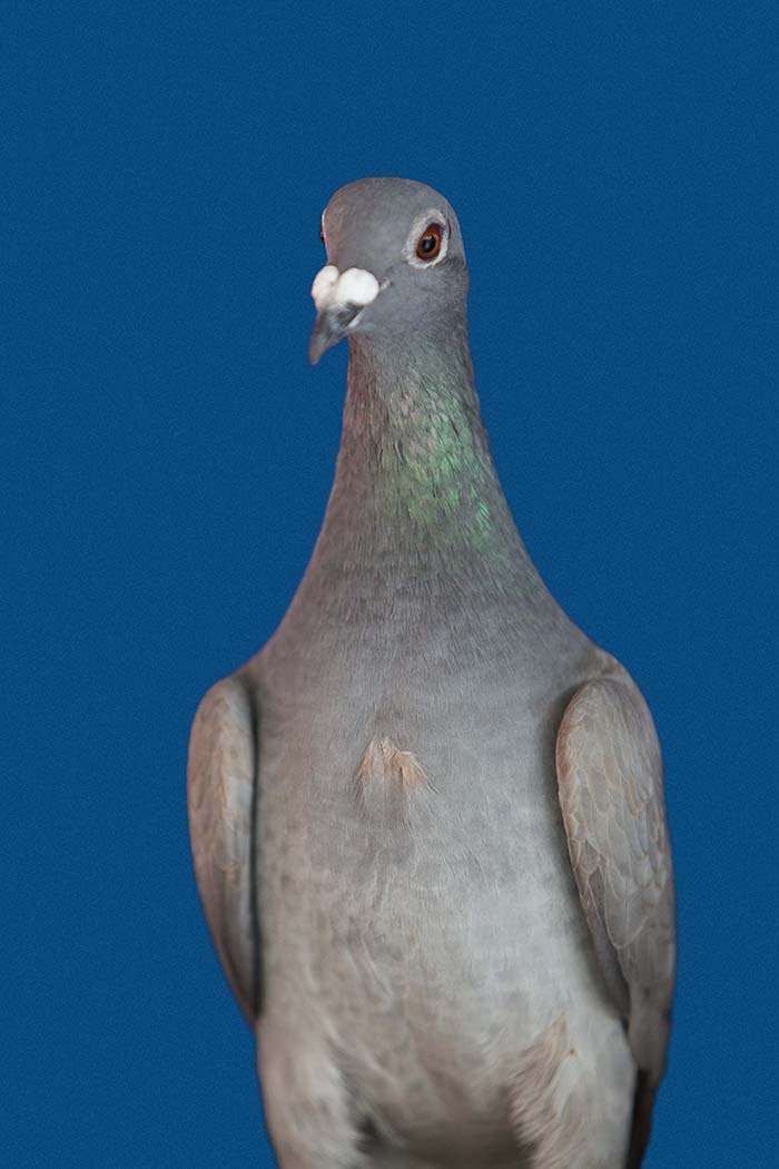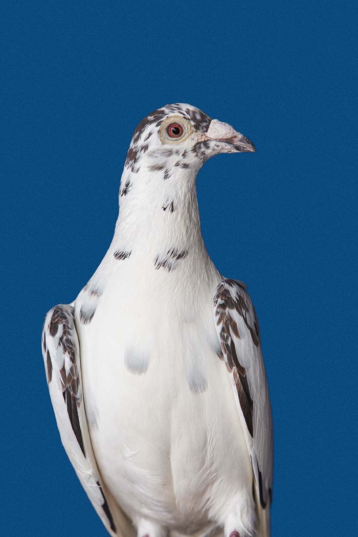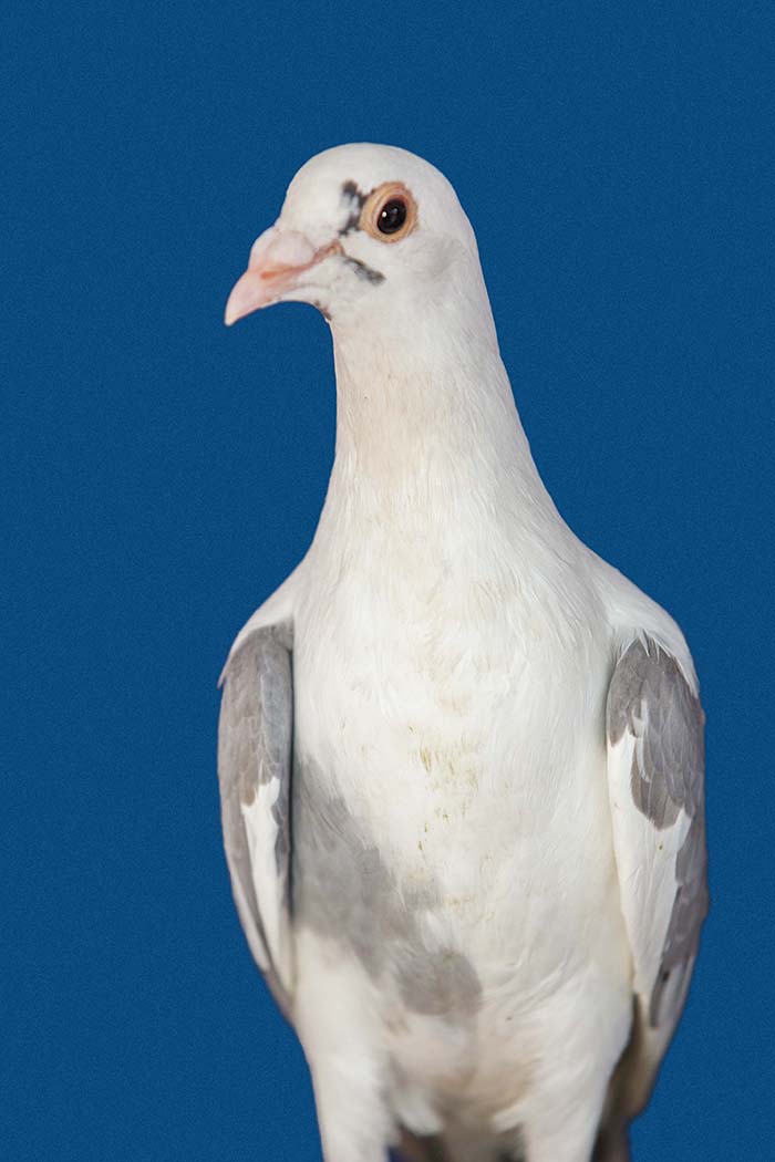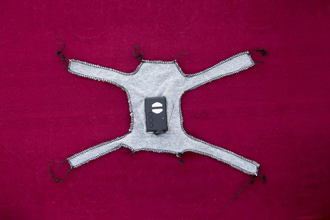 A vest made for pigeons to carry a small video camera in Gaza. Unfortunately we did not train the pigeons enough or did not make the vests comfortable. The birds decided not to fly. The same people who helped me with this unsuccessful attempt were the same who let me portray their pigeons with the light blue background used for Palestinian passports which became the series Bird Fly.