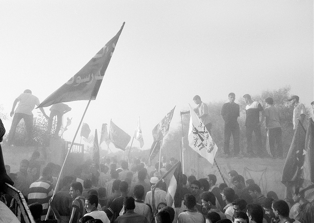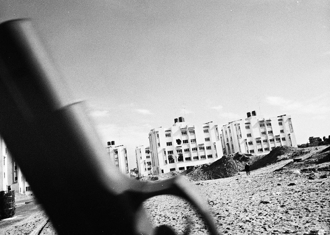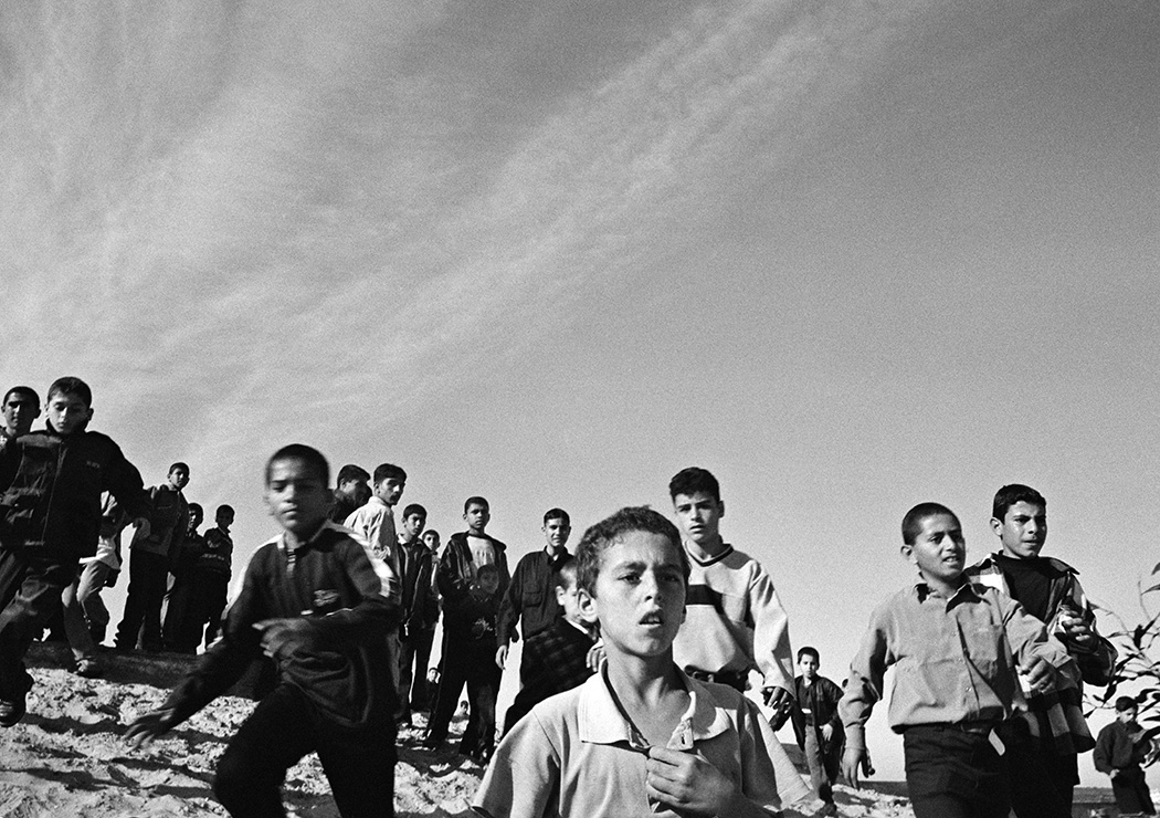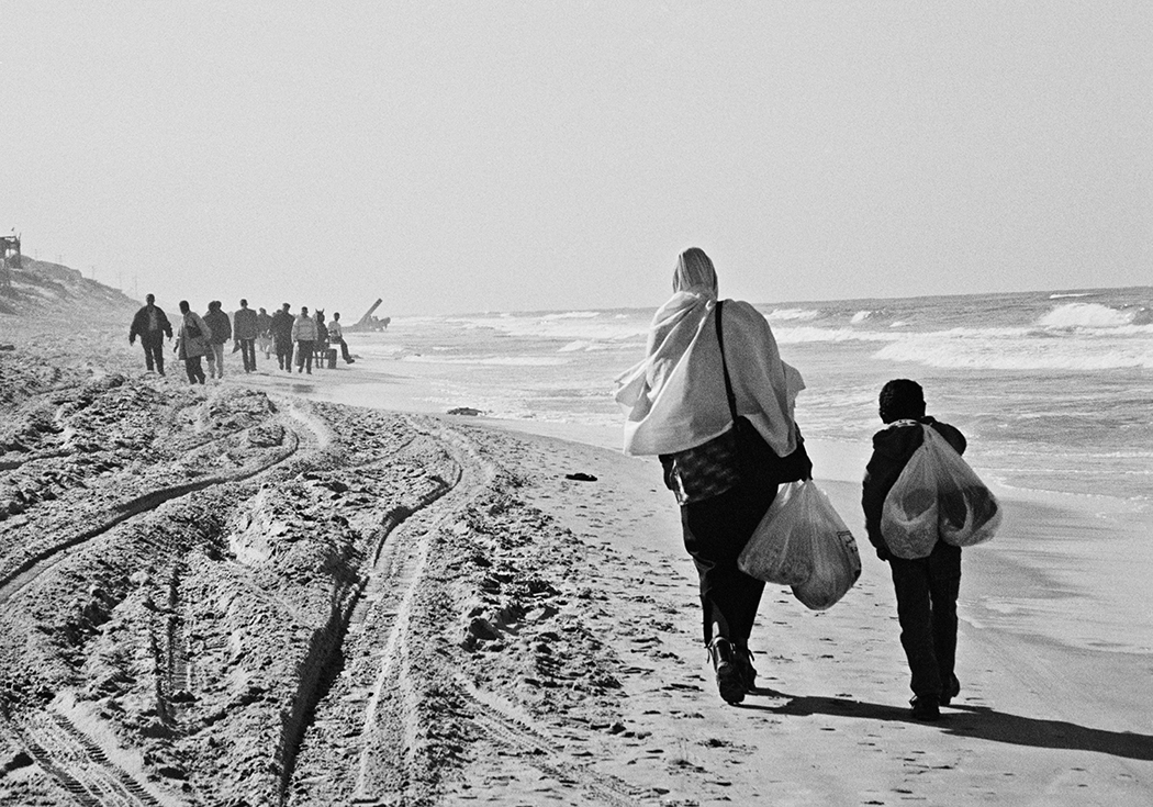 During my first travels to Gaza I would photograph signs of protests, demonstrations, funerals and architecture which were marked by violence and illustrated the conflict between Israel and Palestine. After collaborating with PCHR, Palestinian Center for Human Rights. I started to work in Khan Younis on a project about Bahar street, Bahar meaning the sea. The street starts at the city centre and is lined with shops, grocery stores and soccer fields and goes all the way to the shore. There is also a hospital, a market, and UNRWA (United Nations Relief and Works Agency for Palestine Refugees in the Near East), where they distributed food at the adjacent refugee camp. Near the camp there was an area of destroyed houses and, at the time, there was an Israeli settlement on the other side. The men and women in Khan Younis were close enough to watch the sea, but could not walk down to it because of the settlement. If they wanted to access the beach they had to travel inland and go through other Israeli checkpoints.