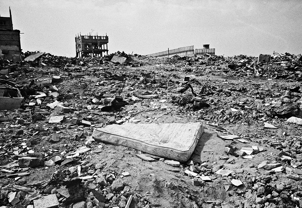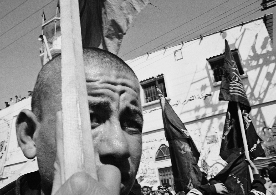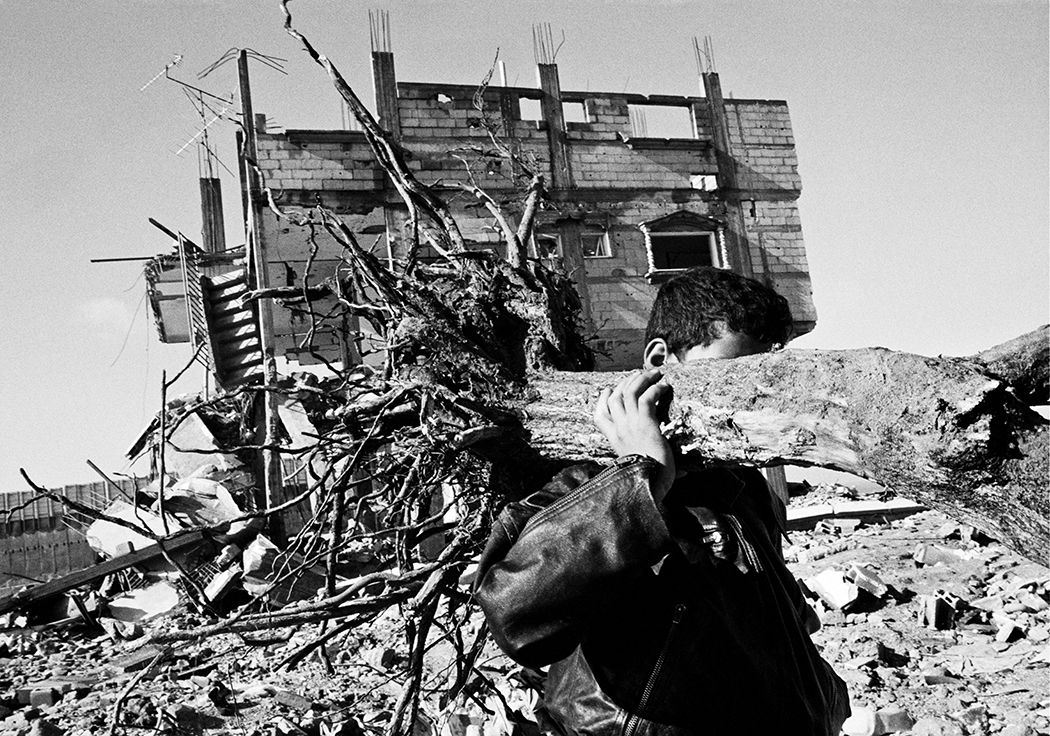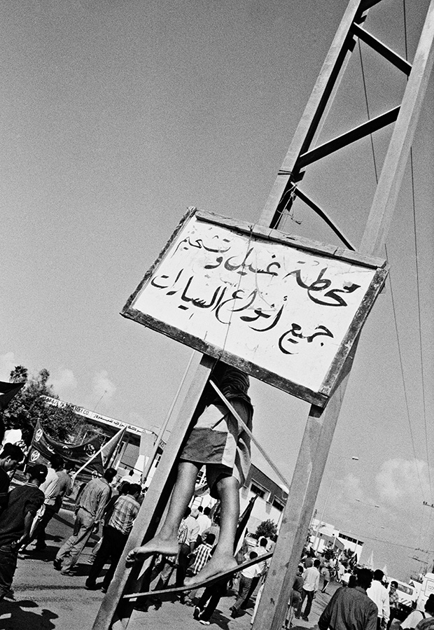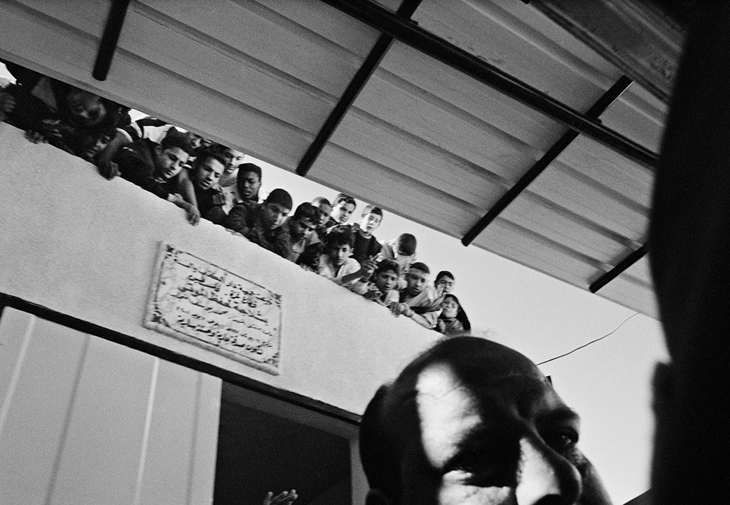During my first travels to Gaza I would photograph signs of protests, demonstrations, funerals and architecture which were marked by violence and illustrated the conflict between Israel and Palestine. After collaborating with PCHR, Palestinian Center for Human Rights. I started to work in Khan Younis on a project about Bahar street, Bahar meaning the sea. The street starts at the city centre and is lined with shops, grocery stores and soccer fields and goes all the way to the shore. There is also a hospital, a market, and UNRWA (United Nations Relief and Works Agency for Palestine Refugees in the Near East), where they distributed food at the adjacent refugee camp. Near the camp there was an area of destroyed houses and, at the time, there was an Israeli settlement on the other side. The men and women in Khan Younis were close enough to watch the sea, but could not walk down to it because of the settlement. If they wanted to access the beach they had to travel inland and go through other Israeli checkpoints.